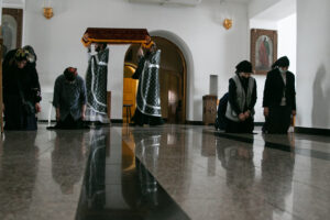 Утреня Великой субботы с чином погребения Спасителя Опубликовано 22.04.2022 Максим Демидович Вечером 22 апреля, в канун Великой субботы, в Вознесенском кафедральном соборе была совершена утреня с чином погребения Господа нашего Иисуса Христа. Из за погодных условий крестный ход был совершён внутри собора. Поделиться:TwitterВКонтактеОдноклассникиGoogle